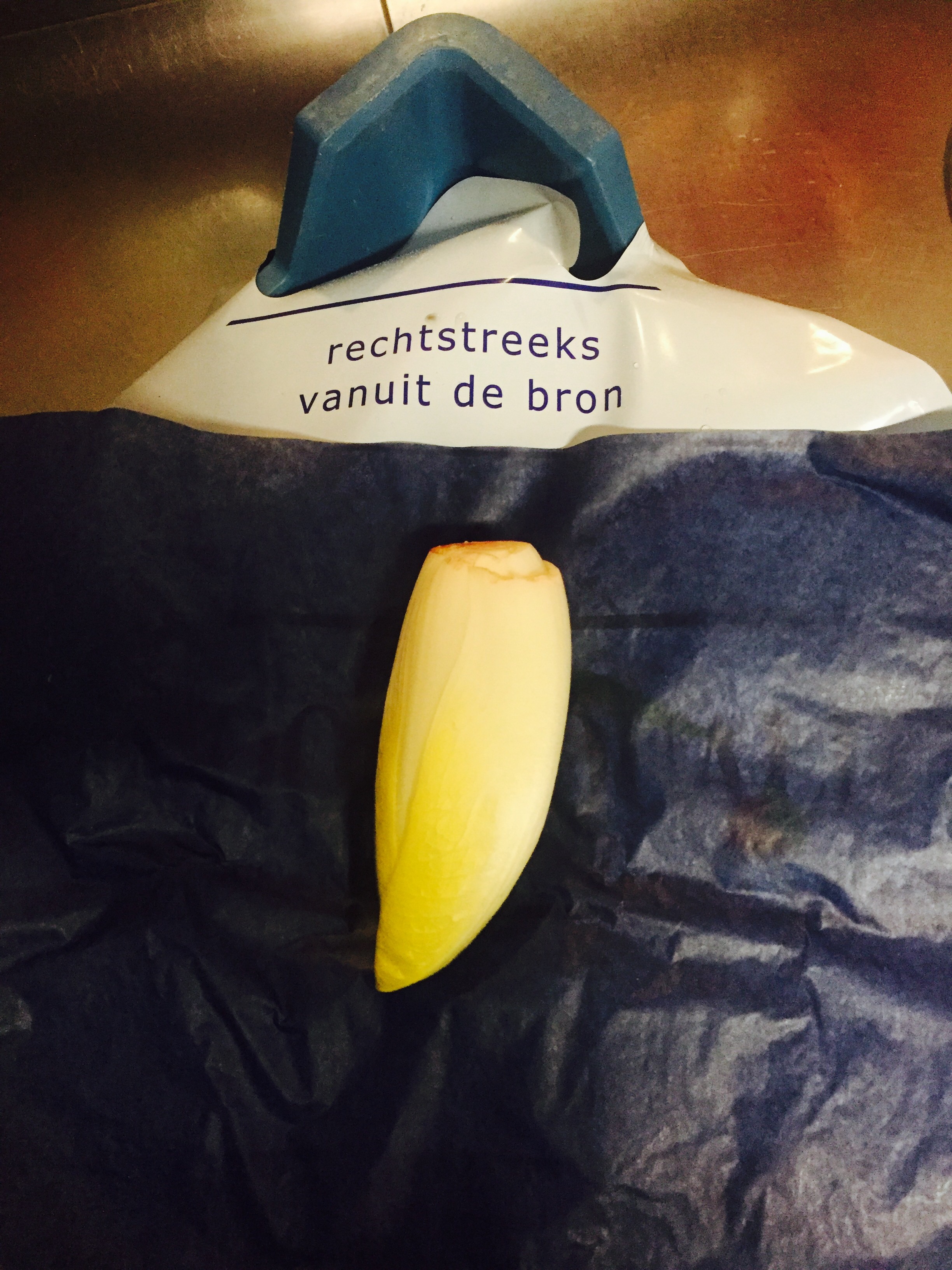 Snij de witlof doormidden en verwijder het binnenste gedeelte